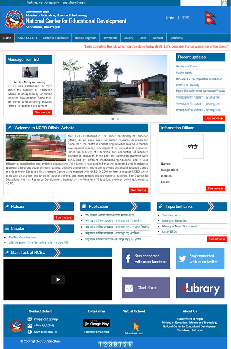 As a result, it was realized that the integrated and coordinated approach and efforts could be more realistic, effective and efficient. Therefore, previous Distance Education Centre and Secondary Education Development Centre were merged with NCED in 2004 to form a greater NCED which deals with all aspects and levels of teacher training, and management and professional trainings. The Council for Educational Human Resource Development, headed by the Minister of Education, provides policy guidelines to NCED. It has four major programme components.